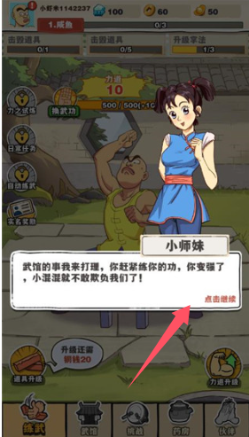 3、接下来完成新手提示后,你就可以开启你的功夫之旅啦