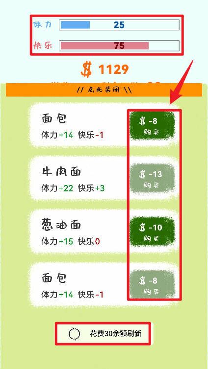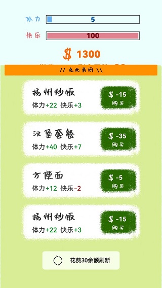 1、30回合限时生存挑战,需高效平衡收支与状态,考验决策与应变能力。