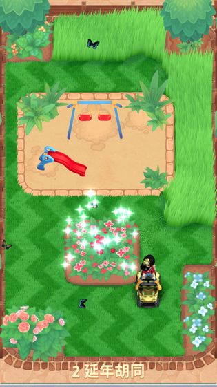 2、操作设计简单轻松,仅需滑动屏幕即可完成割草,搭配俯瞰式广泛视角,让杂草清理过程高效且无遗漏。