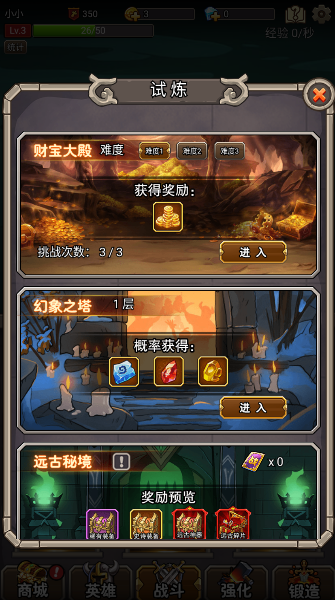 2、通过提升等级、突破星级、升级技能等方式增强英雄实力,适配不同战斗需求。