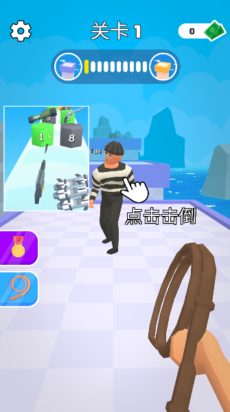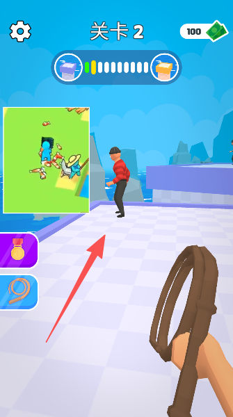 《皮鞭大师手游》是一款以皮鞭攻击为核心玩法的休闲动作作品,战斗目标清晰明确,主要通过瞄准头部实现一击制胜,或利用皮鞭抓取敌人并将其投掷出场外,从而清空战场上的所有敌对目标。每成功通过一个关卡后,即可开启专属宝箱作为通关奖励,持续推进关卡进程。