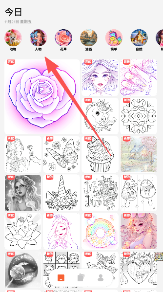 2、海量线稿任君挑选,看对眼哪张就点开它,准备开始一场色彩魔法秀。