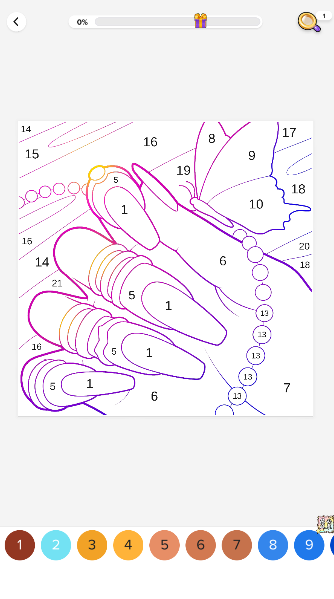 1、采用经典数字填色机制,每个颜色区域均有明确数字标识,按数字选择颜色即可,过程简单明确。