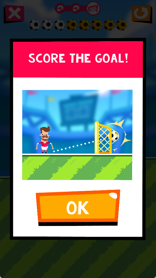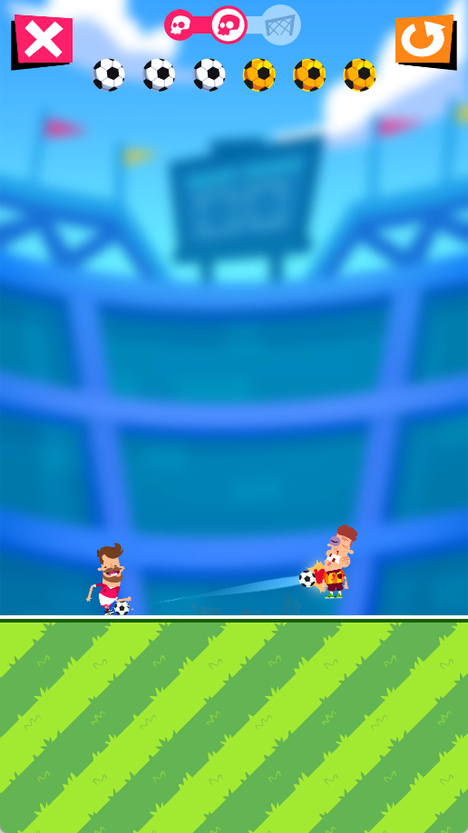 2、在关卡场景中寻找正确射球路线,消灭所有敌人后,确保足球成功进门通关。