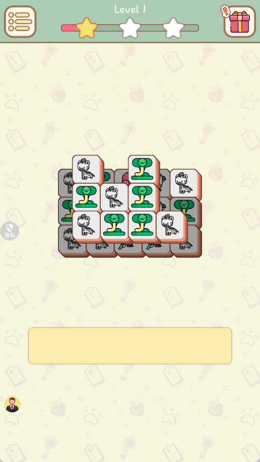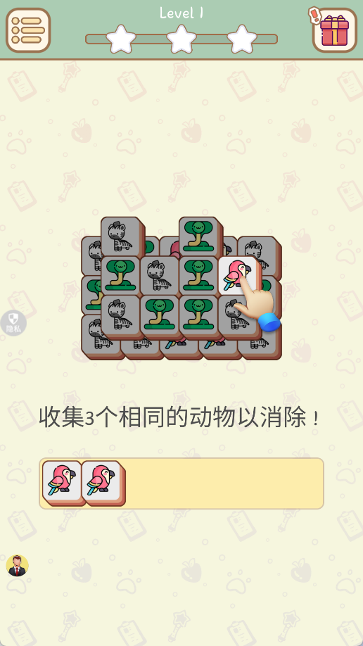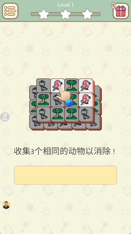 1、观察方块矩阵,用手指点击三个相同内容的方块,方块会进入下方。