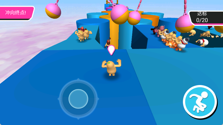 2、与其他玩家同台竞技,避免被关卡陷阱(如滑动沙滩、喷射水流)淘汰,争取晋级名额。