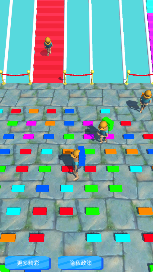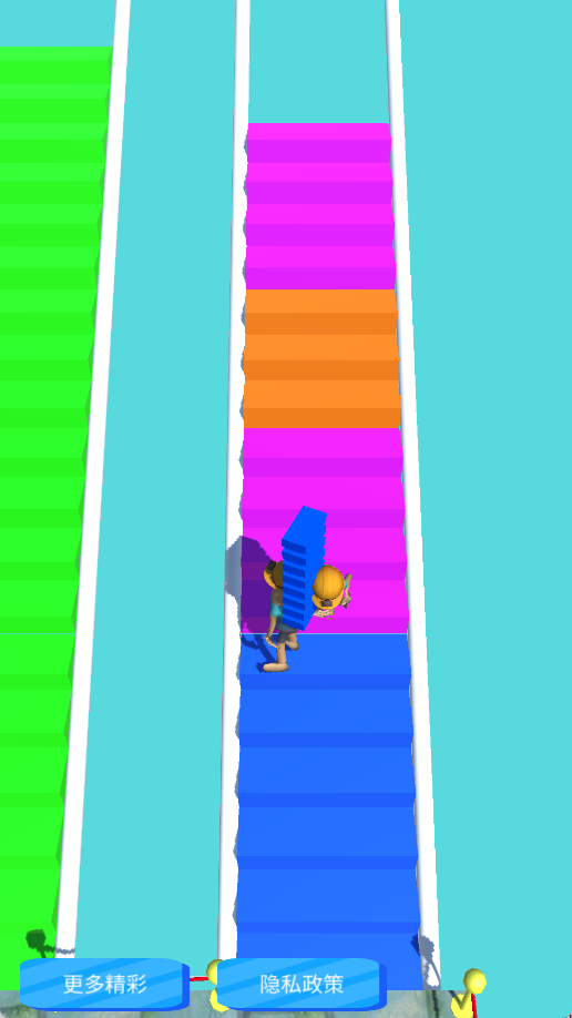 1、核心聚焦“同色积木收集+搭桥竞赛”,规则清晰,需兼顾收集速度与搭桥效率,玩法兼具策略性与趣味性。
