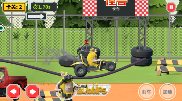 2、猛戳加速按钮让卡车一路狂飙,跳过弹簧床飞跃障碍超级过瘾。