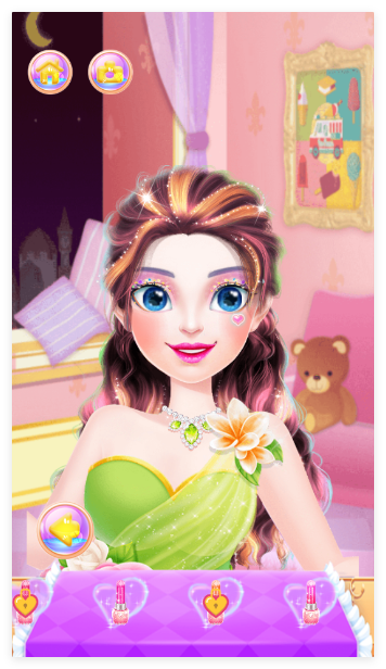 2、可以使用下方的道具为公主美容,带上美瞳、化上精美的妆容等等。