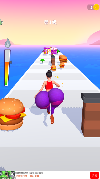 1、开局撒腿向前跑,看见路上汉堡别客气,吃一个就胖一圈超有趣。
