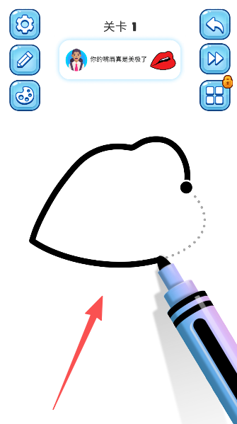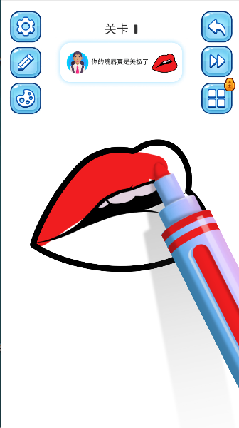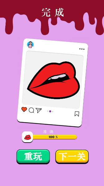 3、看着饱满的红唇跃然纸上,点击完成就能解锁下一关绘画挑战啦。
