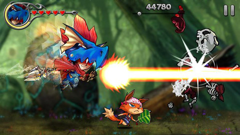 2、跑酷途中砍杀沿路怪物,突破重重关卡限制,积累更高分数与更远距离。