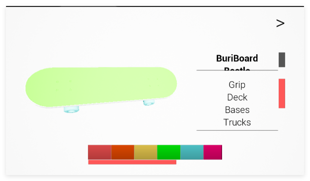 1、进入游戏后可先开启自制滑板功能,自由搭配甲板、底座、轮子等部件,打造符合个人风格的专属滑板,完成后选择目标滑板公园。