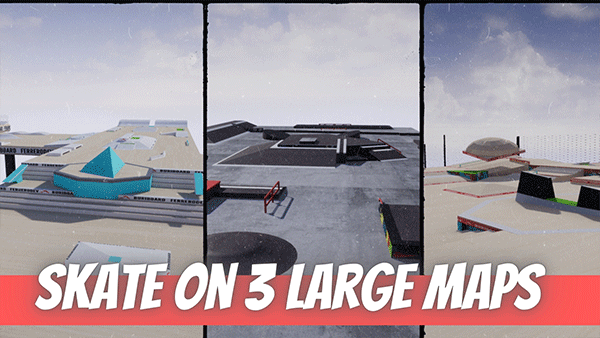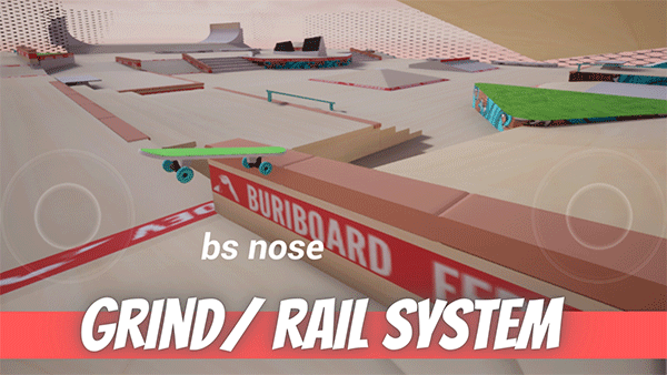 2、音画表现贴合滑板主题,动感背景音乐搭配流畅的特技动画,配合丰富地形的场景渲染,营造沉浸式滑板运动氛围。