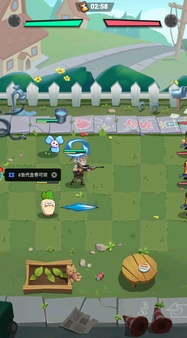 3、场景互动有趣,庭院的树木、栅栏可作为临时屏障,合理利用地形能有效提升防御的稳定性。
