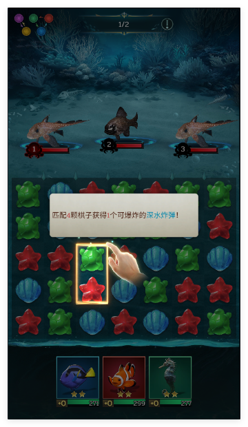 1、融合家园建设、军队养成与三消战斗等多元玩法,打破单一休闲游戏框架,打造丰富立体的海洋探索体验。
