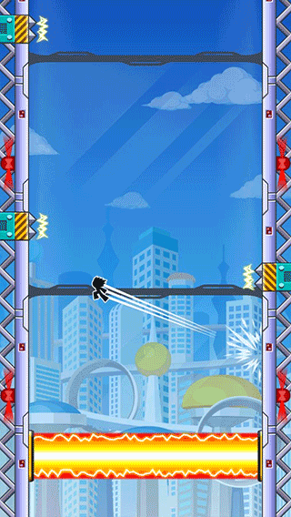 2、跳跃过程中需借助两侧墙体反弹调整方向,避开途中出现的障碍物与陷阱,精准把控点击时机以实现连续平稳跳跃。