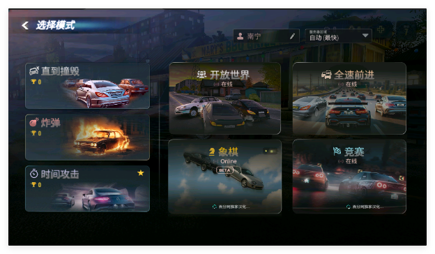 1、进入游戏后,可以看到有多个模式选择,这里选择直到撞毁。