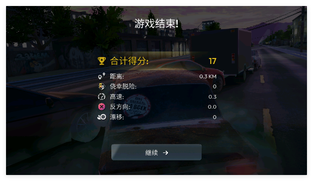3、最后当我们的车撞到别人的车就游戏结束了。