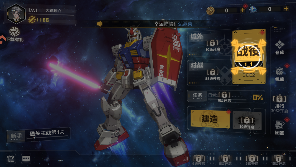 1、果盘渠道服专属福利丰厚,上线即送1000抽与核心高达,无需额外投入即可快速解锁强力机体,降低养成门槛。