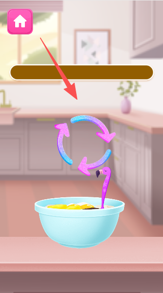 1、游戏开始啦,系上小围裙,跟着魔法公主一起动手制作香喷喷的蛋糕吧。