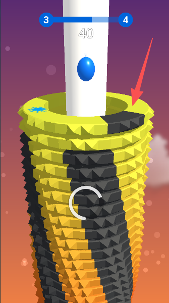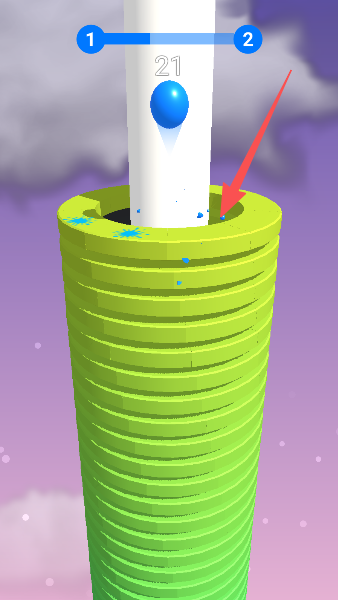 1、指挥蓝色小球精准落下,砰的一声砸碎黄色塔层。