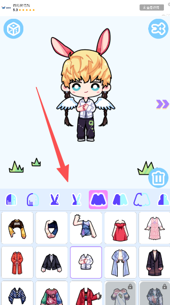 1、丰富的服饰部件系统,涵盖发型、服装、鞋袜、饰品等多个装扮类别。