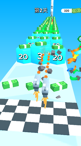 3、用增强的火力砰砰砰打碎前方所有目标,收集散落的金币,顺利通关。