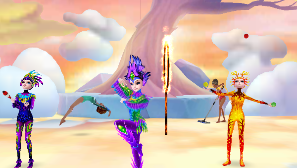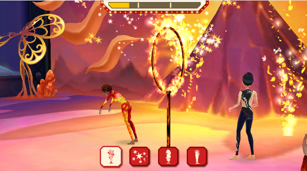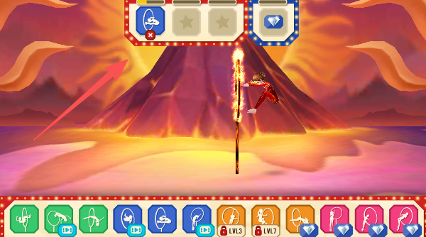 3、在舞台中央灵活操控角色,点击下方的特技按钮完成高难度动作,推动演出进度。