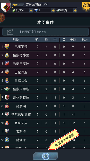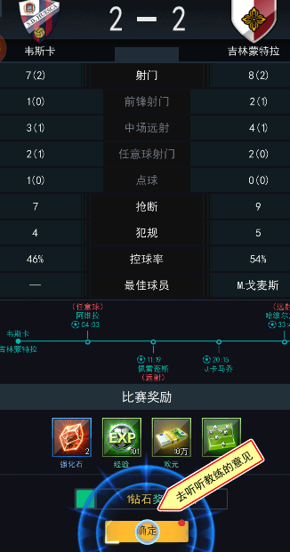 3、根据球员数据分析球员实力,用奖金强化球员装备、升级训练设施。