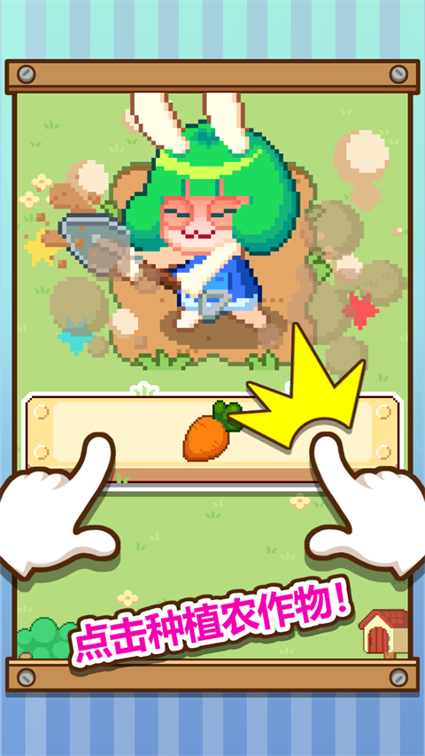 1、点击土地种植基础作物,持续触碰加速生长,成熟后自动产出金币,及时清理枯萎作物,用初始收益解锁更多种植地块