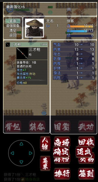 2、积累修为与资源,通过锻造、交易获取强力装备,提升战力与武学造诣。