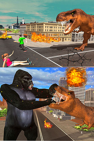 《金刚向前冲汉化版》是融合动作格斗与生存狩猎的3D模拟手游,以金刚与恐龙争夺城市霸主为核心剧情,支持角色切换与自由地图探索。可操控金刚展开纯肉搏激战,也能使用武器远程反击恐龙侵袭,完成狩猎任务解锁进阶能力,3D真画面搭配自由化战场,在摧毁与对抗中体验热血巨兽争霸,兼具解压趣味与动作爽感。