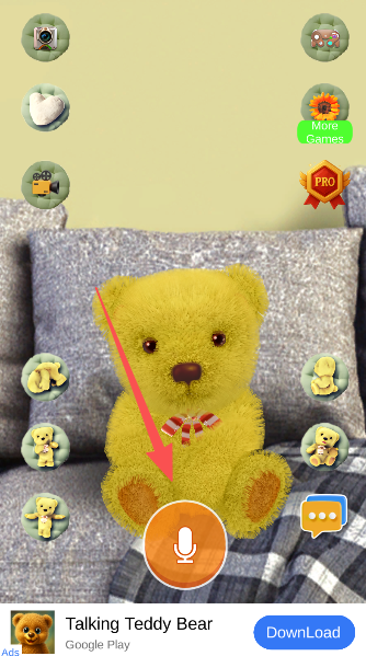 1、在游戏场景里戳一下麦克风按钮,你的毛茸小伙伴就准备好和你聊天啦。