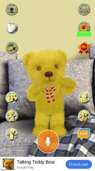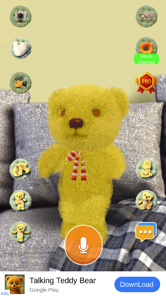 《会说话的毛绒熊》是一款以声音交互为核心机制的3D虚拟陪伴游戏,以智能语音响应为特色,围绕麦克风采集的声响提供实时音频与动画反馈。内置海量声源内容,覆盖国风儿歌、绘本故事与生活科普三大类别,并针对不同交互方式与内容类别配以独特的表情与动作反应,构建出兼具娱乐属性和探索性的综合陪伴体验。
