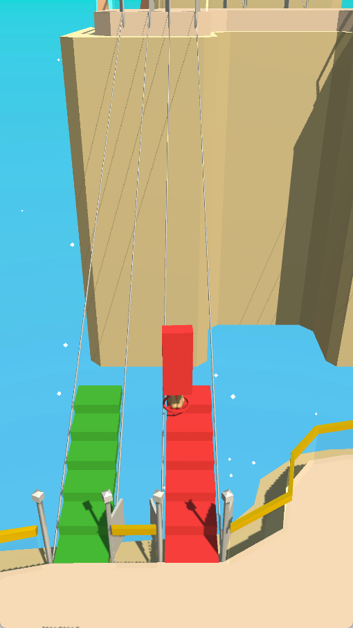 2、点击屏幕快速搭建桥梁,跨越障碍朝着关卡终点持续前进。