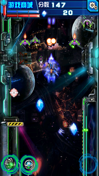 3、遭遇精英敌机时,释放僚机辅助攻击,积攒能量槽后触发“能量爆发”,借无敌状态冲过密集弹雨区域。