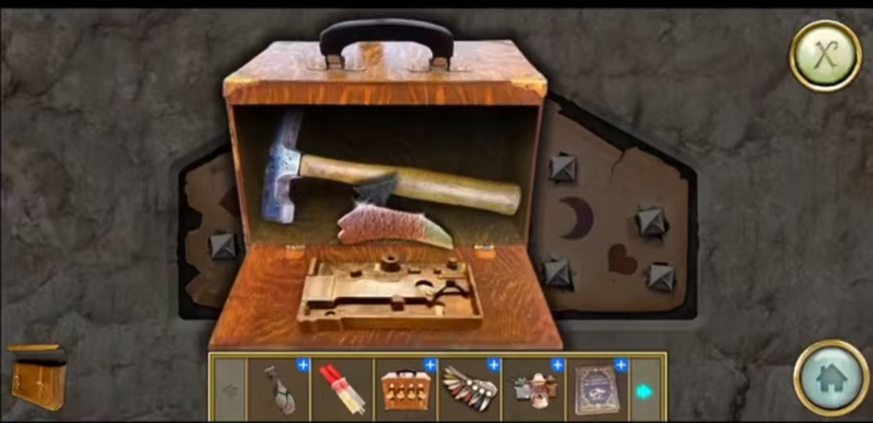 3、在盒子内找到一个铁锤,去找到可以破开的地方。