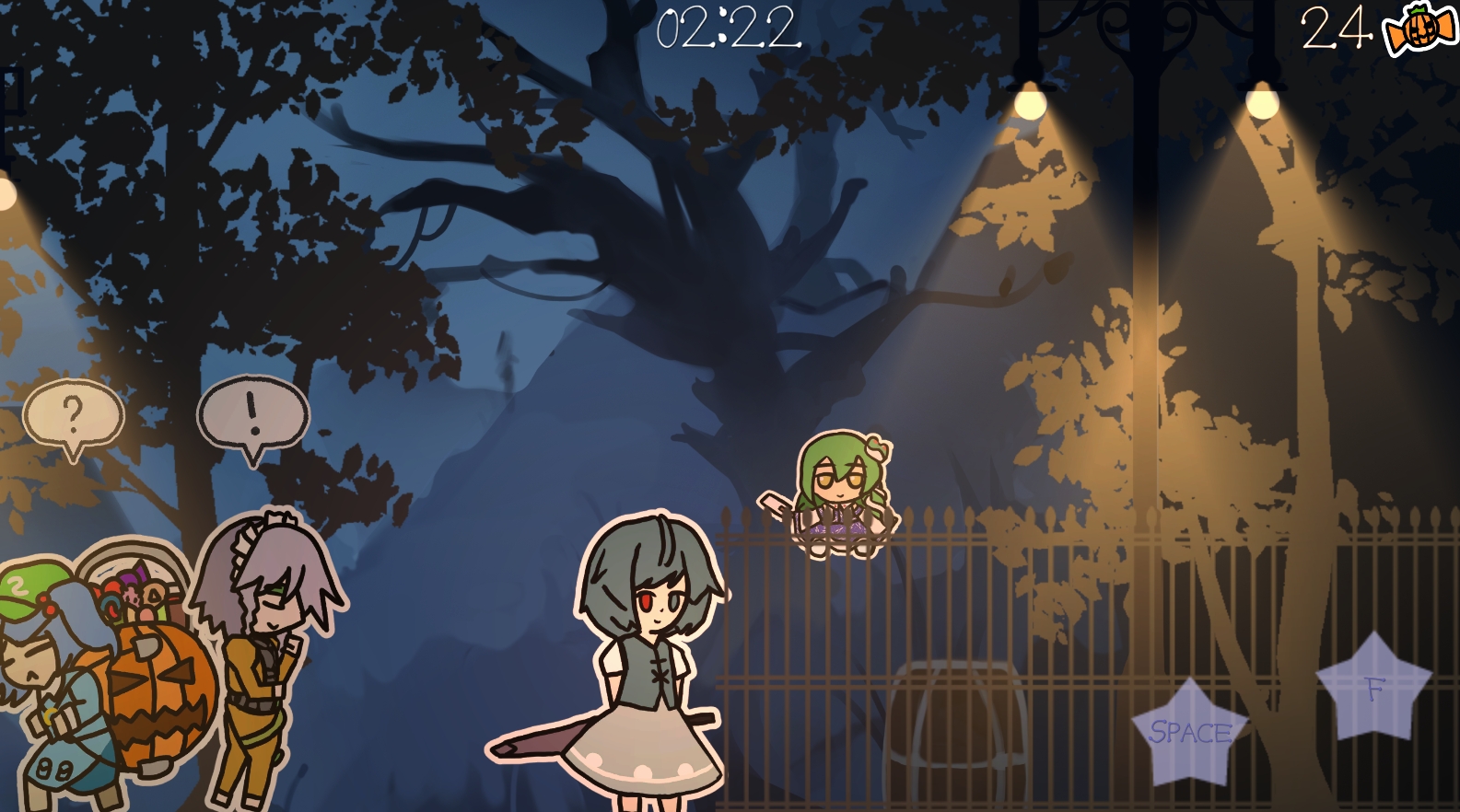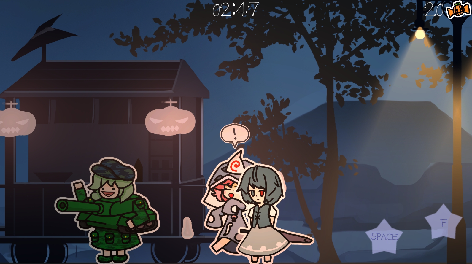 1、采用 Q 版萌系画风,角色造型圆润可爱,惊吓特效俏皮不恐怖,搭配东方 Project 经典 BGM 改编版,氛围轻松愉悦。