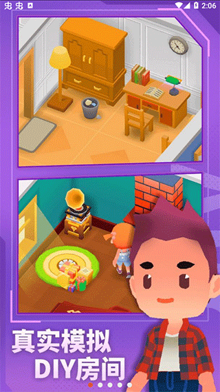 2、高自由度家园定制,上千种家具与装饰可随心摆放,支持多楼层与功能房间搭建,打造独一无二的温馨居所。