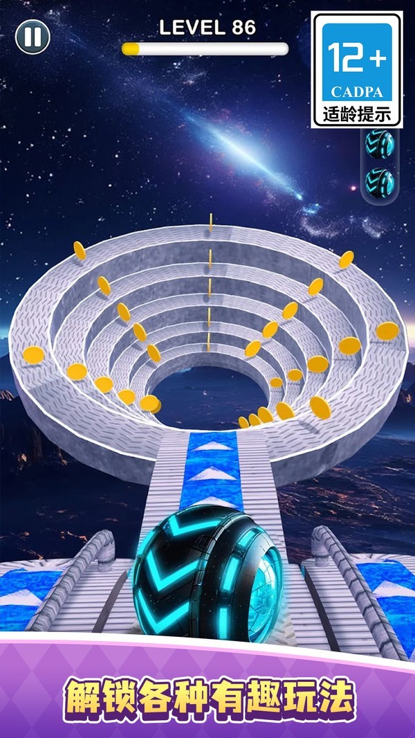 3、掌握滑动节奏,轻滑微调方向,避免大幅度滑动导致球球冲出赛道,遇到极速路段时紧盯前方障碍,提前做好规避准备。