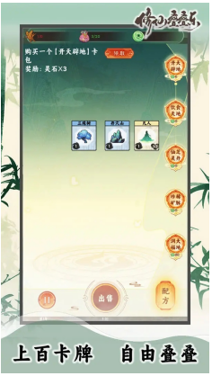 1、堆叠成功时触发灵气爆发特效,搭配境界晋升动画与语音播报,带来强烈的仪式感与成就感,强化修仙沉浸体验。