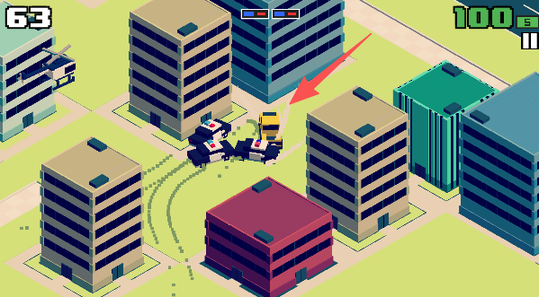 3、 操作设计极简,通过双按键控制车辆移动,需灵活规避障碍并利用场景元素阻挡警车。