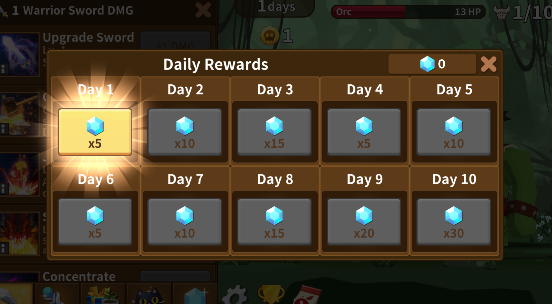 3、开启自动战斗挂机收益,签到可以获取钻石。
