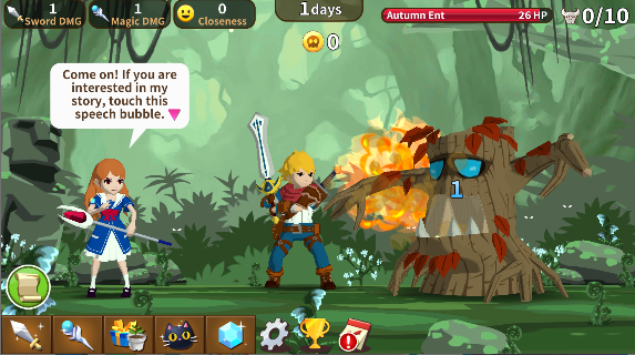 1、进入魔界森林,连续点击袭来的魔物触发攻击。
