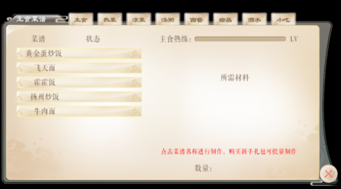 2、返回仙厨楼解锁基础菜谱。