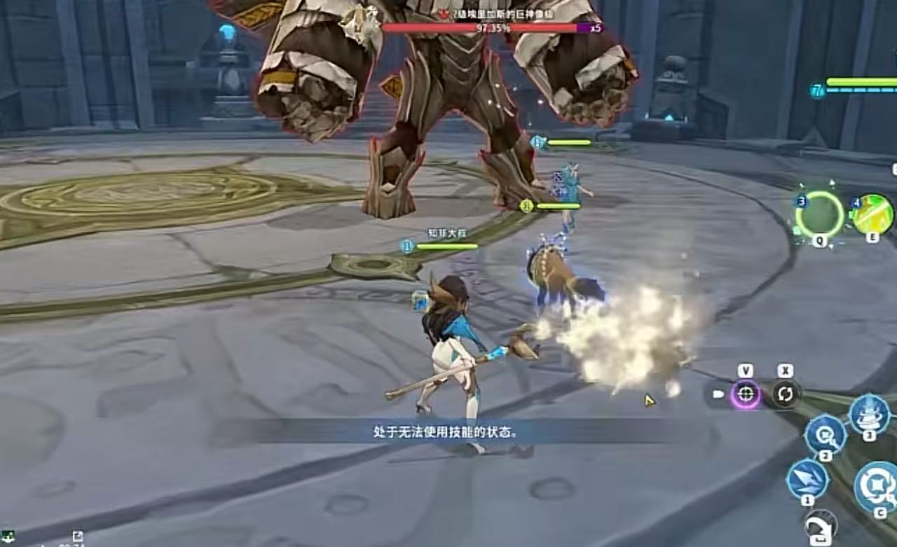 2、挑战初级裂缝副本,指挥水属性魔灵控制敌人。