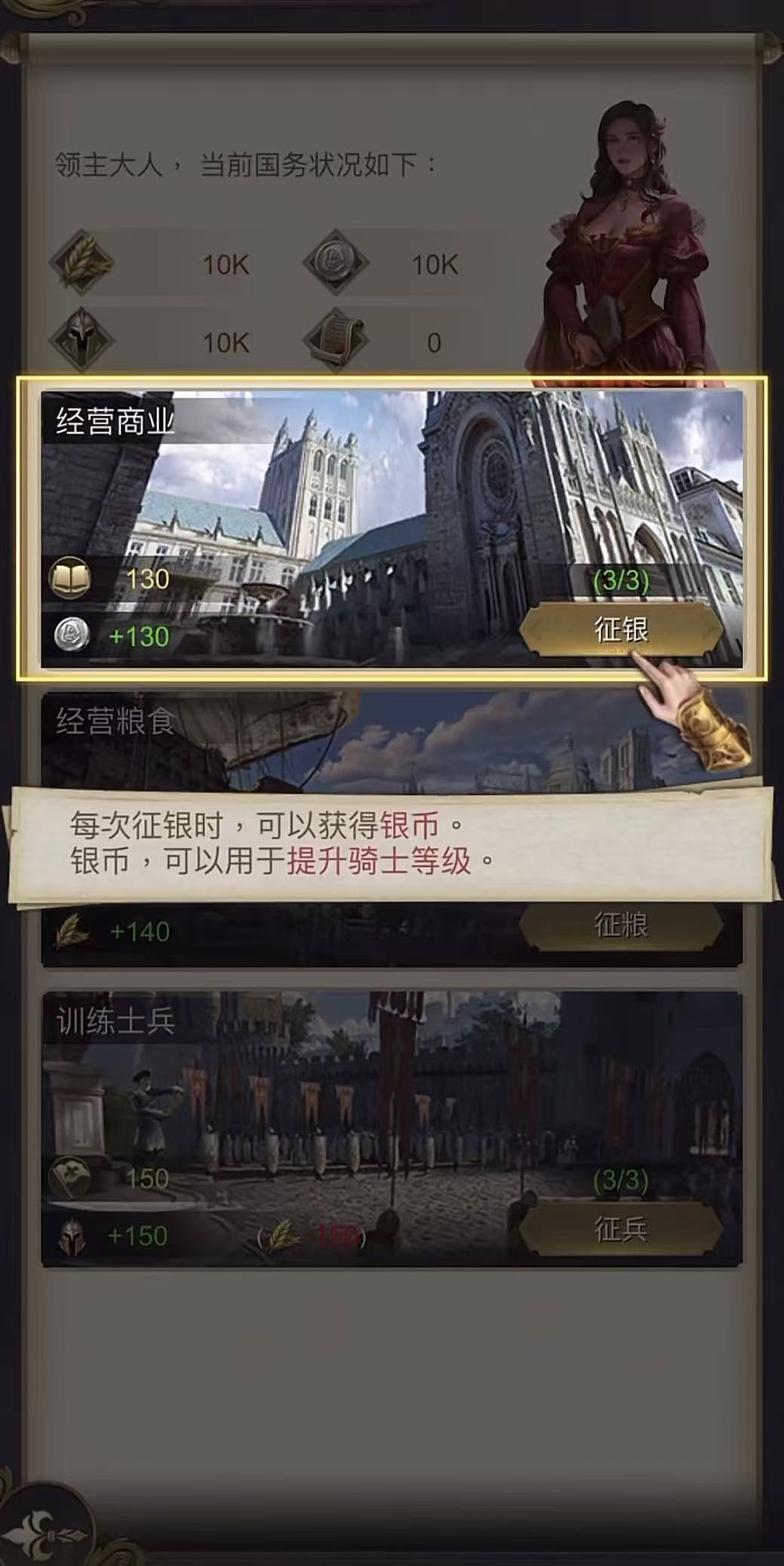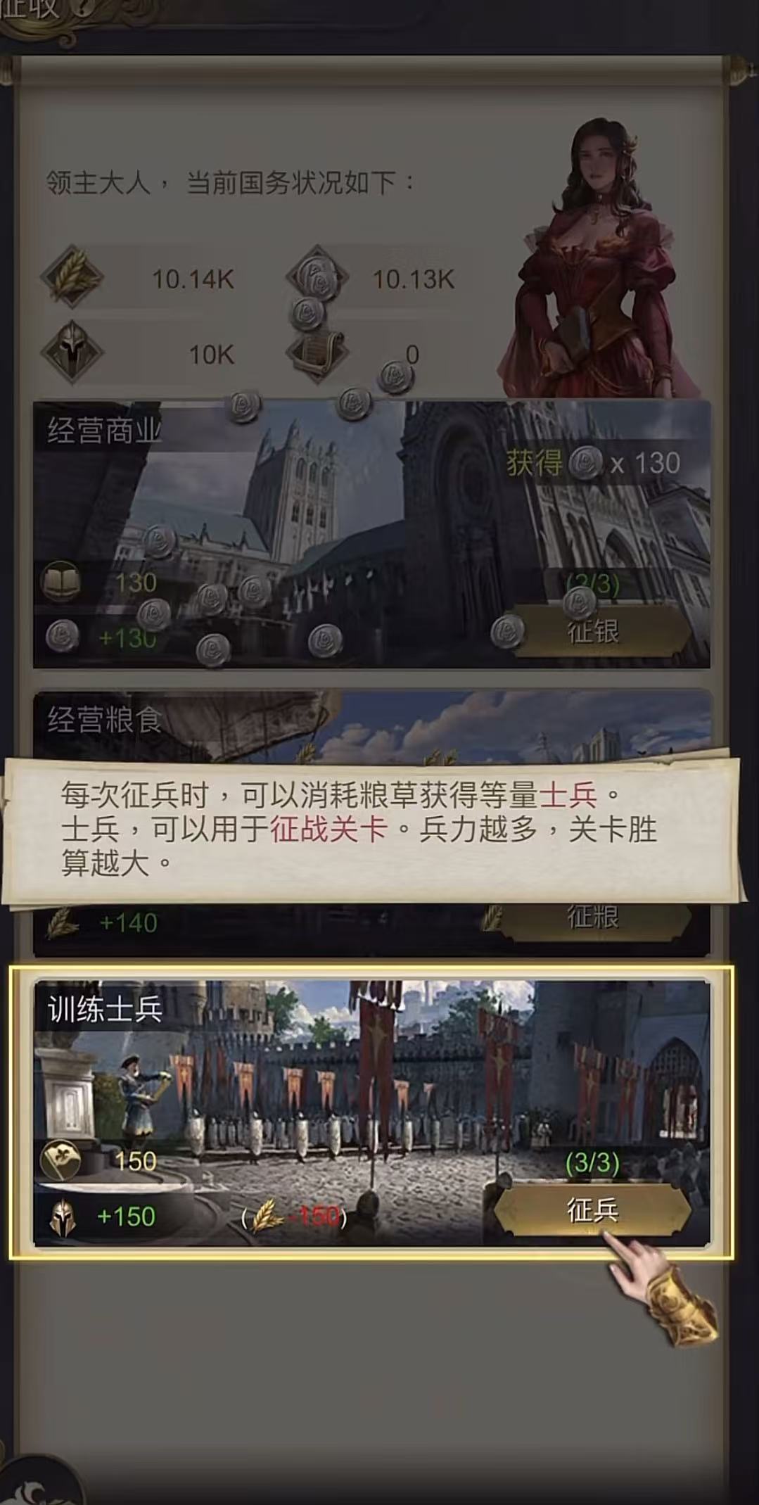 2、挑战主线战役获取资源,完成商业帝国的建造。