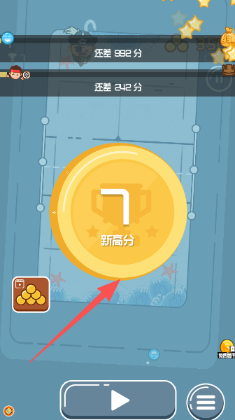 3、一局结束,看看谁得分更高,还能挑战上次的记录,试试刷新它吧。