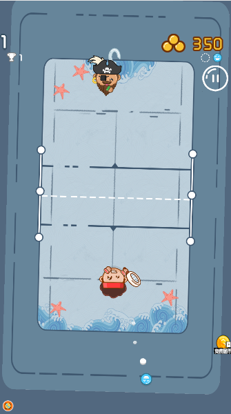 2、注意啦,那个蓝色小球蹦过来了,快把它打回去,可别让它在你这边停下。